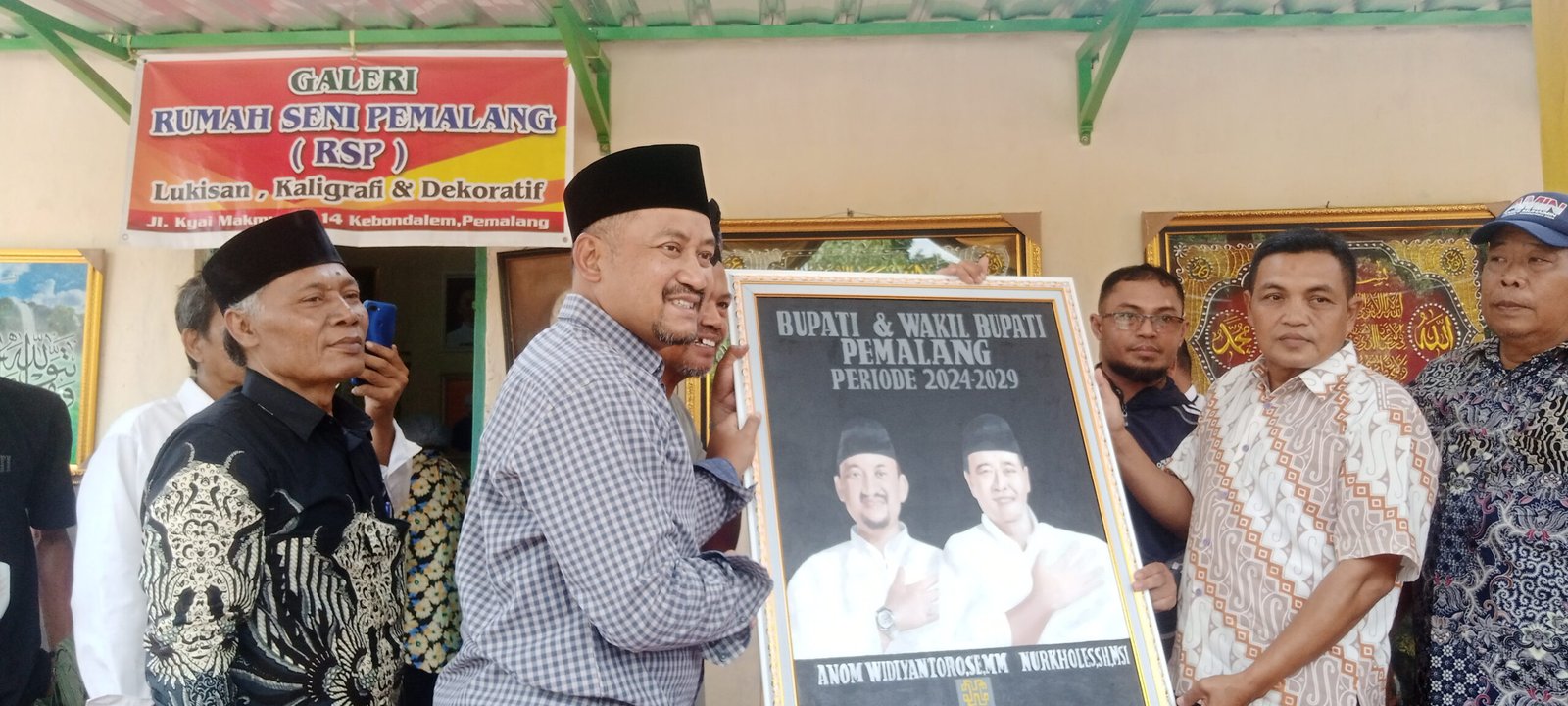 Dalam kegiatan peresmian Rumah Seni Pemalang ini, Bupati juga menyaksikan hasil karya para seniman seni lukis dan juga menerima bingkisan berupa lukisan.