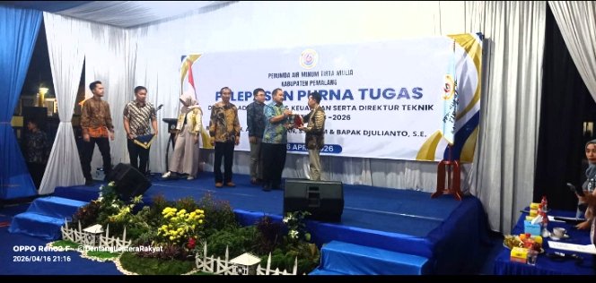 Pemalang – Langit cerah bertabur bintang diangkasa jadi saksi momentum paling membahagiakan dilingkungan Kantor Perumda Air Minum Tirta Mulia Kabupaten Pemalang, malam ini, (16/4). Kegiatan sederhana nan penuh makna yang diselenggaran tersebut sebagai momentum pelepasan purna tugas Moch. Arief Setiawan, S.H., M.M. yang menjabat sebagai Direktur Administrasi dan Keuangan, serta Djulianto, S.E., yang menjabat sebagai Direktur Teknik.