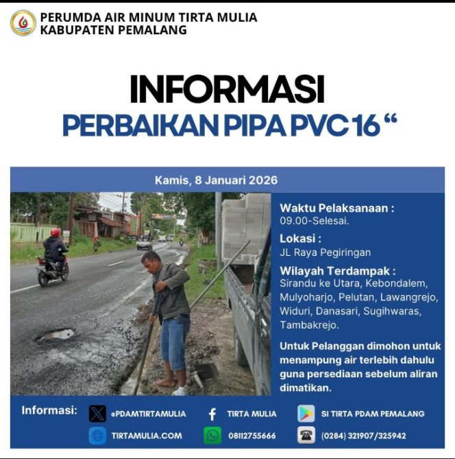 Info Perbaikan Pipa Perumda Air Minum Tirta Mulia Pemalang Hari Ini